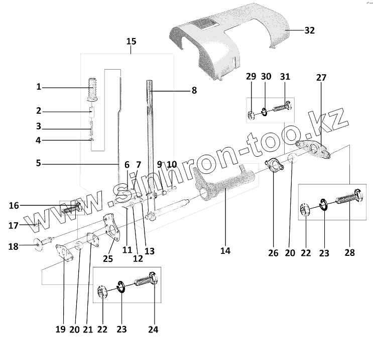 | 27 | 47-2505090 | Кронштейн крепления вала управления | |