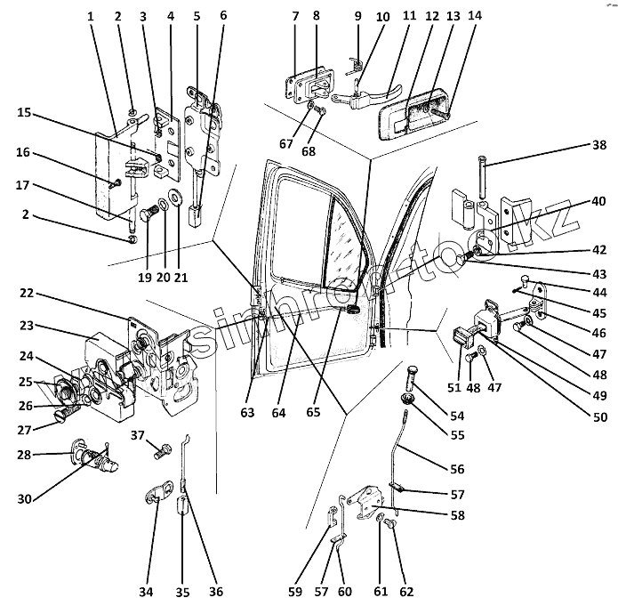 Каталог запасных частей к технике: ЗЗГТ ГАЗ-3409 (Бобр). Замки, петли