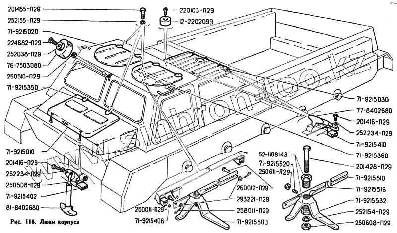 Каталог запасных частей к технике: ЗЗГТ ГАЗ-71. Люки корпуса