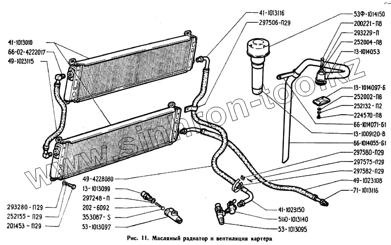 Каталог запасных частей к технике: ЗЗГТ ГАЗ-71. Масляный радиатор и вентиляция картера