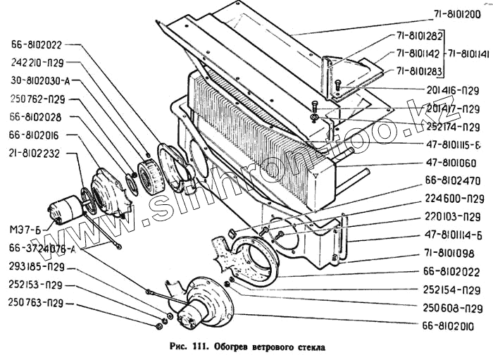 Каталог запасных частей к технике: ЗЗГТ ГАЗ-71. Обогрев ветрового стекла