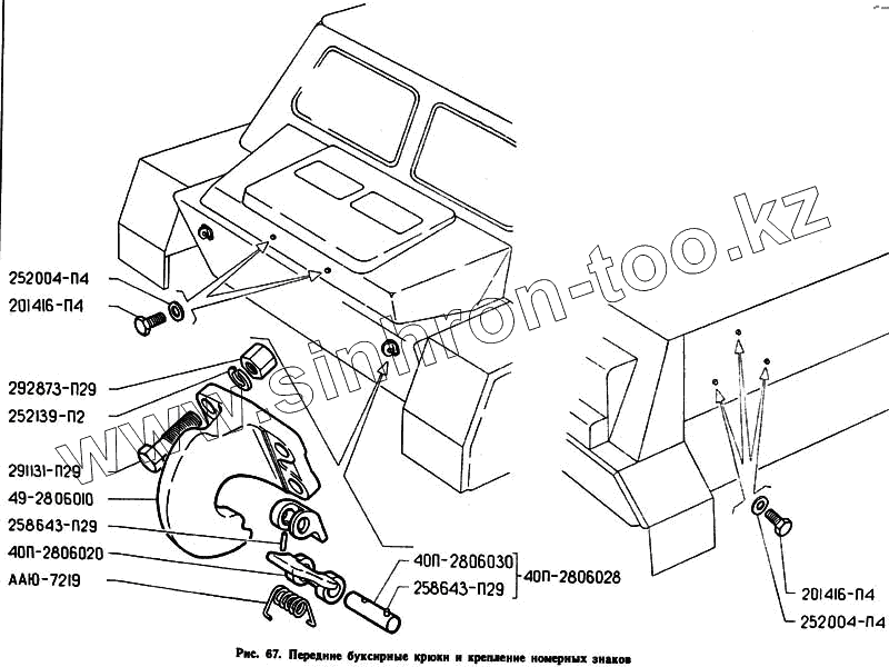 Каталог запасных частей к технике: ЗЗГТ ГАЗ-71. Передние буксирные крюки и крепление номерных знаков