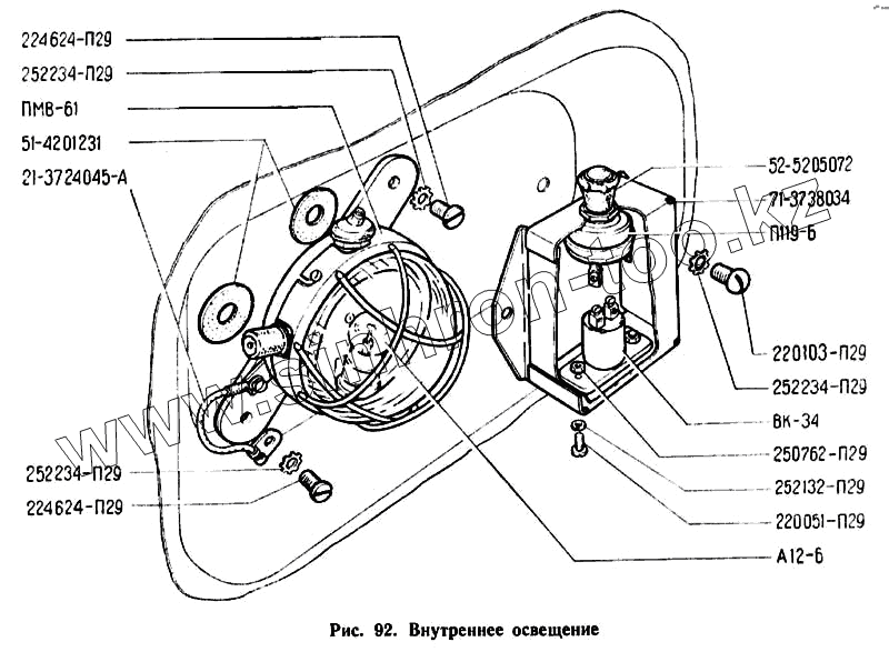 Каталог запасных частей к технике: ЗЗГТ ГАЗ-71. Внутреннее освещение